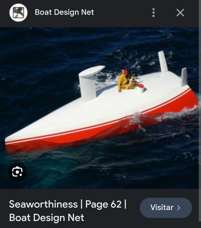 ![]() 2013 Calculan los pernos, los pernos no se rompen: los pernos enteros acaban en el fondo del mar Calculan las varengas, y las varengas no se rompen: están intactas en el casco volcado 2014 Velero de más de 10 Toneladas de una marca muy aplaudida y alabada: tal desastre de comportamiento hidroDinámico que la tripulación asustada pide ser rescatada, y el velero vira (se ve al final del vídeo) y cruza solo el Atlántico Y así todo |