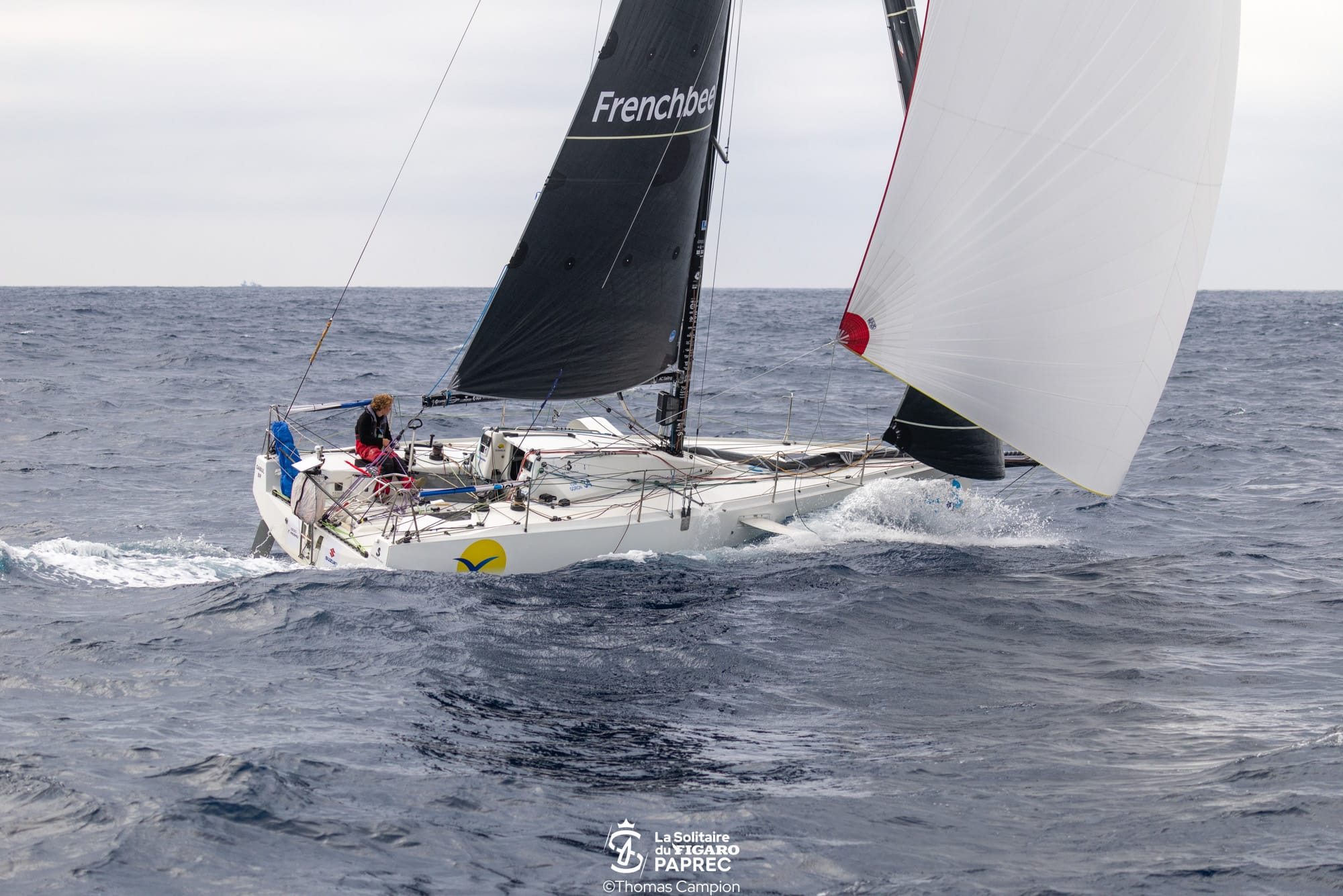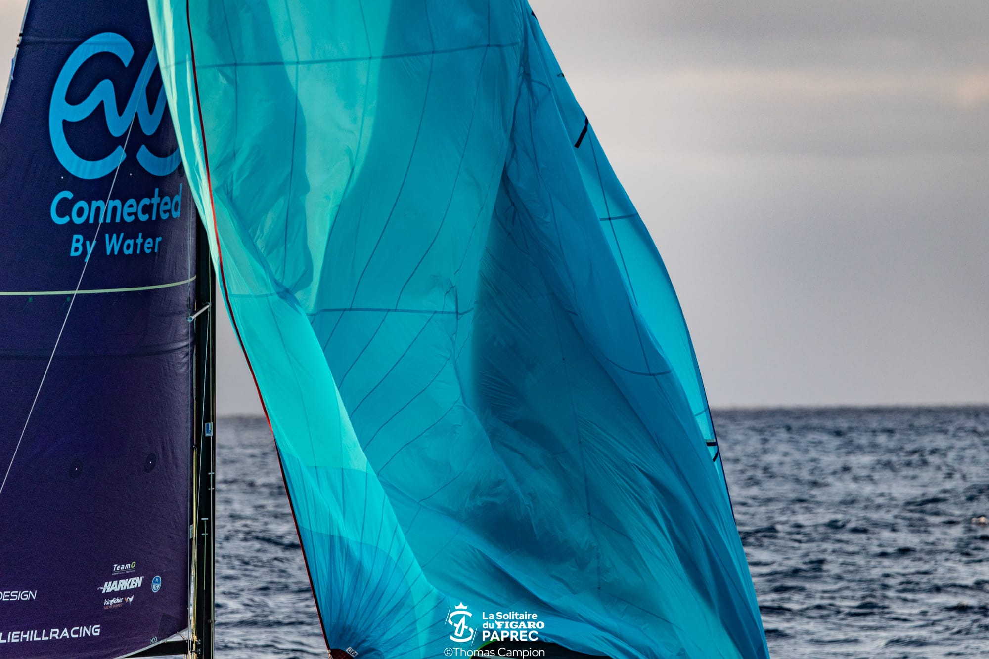 A primera hora de la mañana, dos grupos navegan hacia un único objetivo: el cabo Finisterre y la costa española. Pero una dorsal de alta presión bloquea el paso de los 34 regatistas que compiten en esta segunda etapa. Es una zona que tendrán que cruzar para alcanzar su objetivo, pero la gran incógnita del día será dónde y cuándo. El líder del primer grupo, Jules Ducelier, en la Región Normanda, navega con vientos cambiantes de unos diez nudos. Le acompañan en su viaje Alexis Thomas (Wings of the Ocean) y Paul Morvan (French Touch – Foricher).