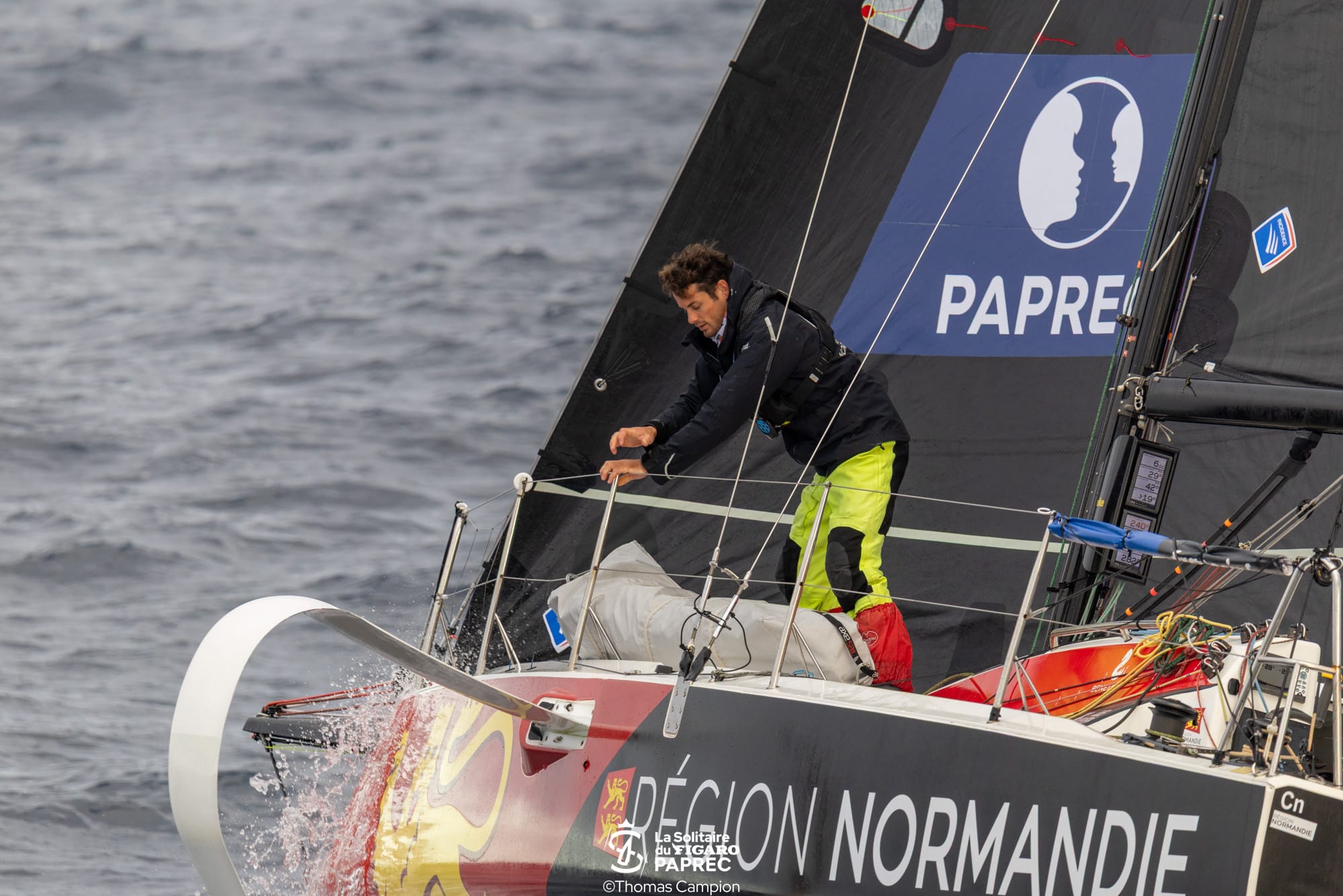 Temprano por la mañana, la flota de 34 Figaros ya está en el Atlántico, al sur de la isla de Sein. Tras 12 horas de regata, Alexis Thomas, a bordo del Wings of the Ocean, lidera la ruta, por delante de Hugo Cardon, a bordo del Sarth'Atlantique, y Arno Biston, a bordo del Article.1. Pero antes, los patrones tuvieron que soportar una noche agitada de maniobras, náuseas y concentración. Afortunadamente para ellos, estas condiciones fueron solo pasajeras, e incluso si el mar sigue así de agitado y bajando, el avance hacia el sur es mucho más manejable.