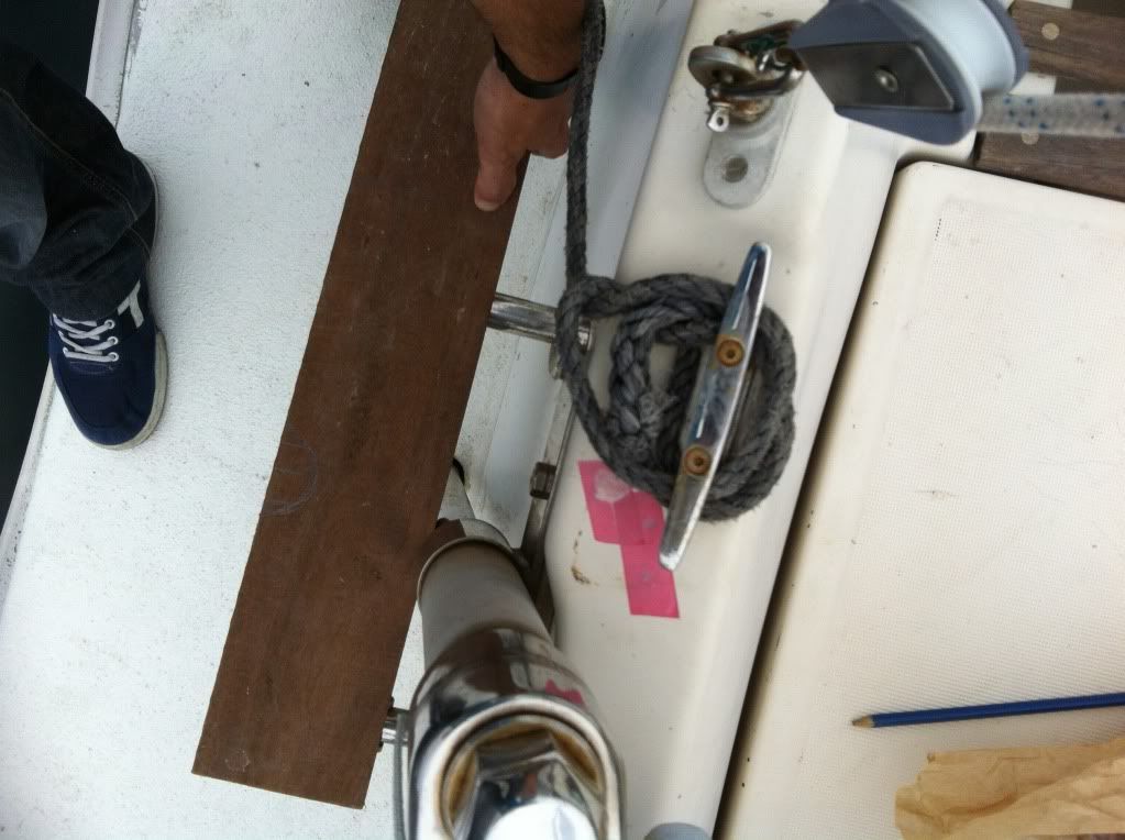 Lo he resuelto muy fácil. La madera tiene una hendidura como la tuya para que pase el cabo que tensa el stay de popa, pero la fijación de la madera la he resuelto con dos tornillos pasantes que atraviesan la madera y el tubo, fijados con una tuerca por la parte de abajo. Así lleva un porrón de años. Los orifícios en el tubo, los hice como dice Hopetos. Sitúas la madera sobre el tubo después de hacer los agujeros y metes una broca del mismo diámetro que el agujero desde abajo hacia arriba y girándola con lo dedos señalas la madera. La retiras y perforas con el taladro. Te aconsejo que los orifícios los hagas con una broca muy fina, para que no astille la salida. Una vez hechos los agujeros guia, das la vuelta a la madera. Con una broca del calibre de los tornilos que vas a montar, haces los orifícios por la parte de arriba del escalón. Si haces algún astillamiento quedará en la parte oculta. Rebe |