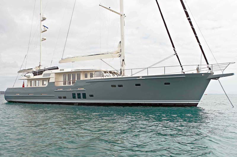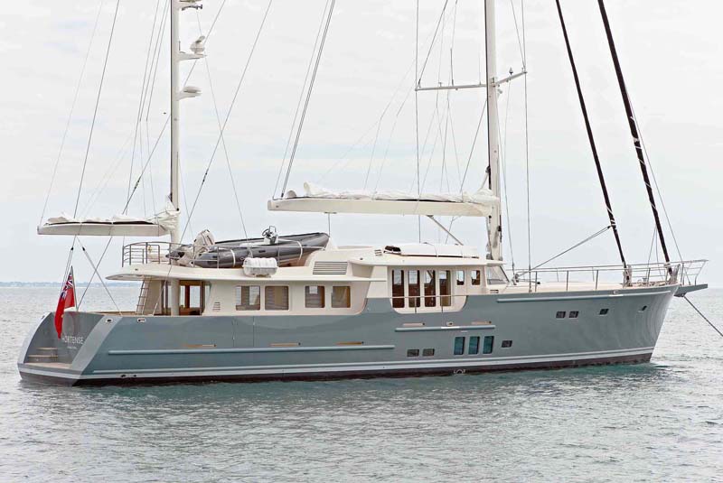 El barco esta concebido para navegaciones australes tiene 380m² de vela en ceñida y 570m² en portantes, dos motores de 285 c, lineas de agua finas para navegar a vela e interiores para disfrutar del paisaje sin salir al exterior y es manejable por dos personas.
