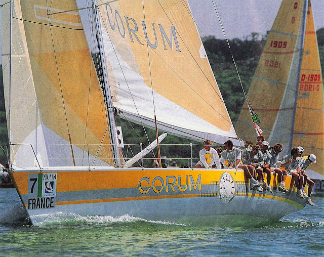 ¿Quién no conoce los relojes Corum de banderitas marineras? Llevan desde 1960 haciendo la gama Admiral's Cup... y a principios de los 90 patrocinaron al potente equipo francés de la Admiral's Cup -que ganaron en 1991-. Seguro que muchos recordáis la propaganda en prensa con los barcos y los relojes...