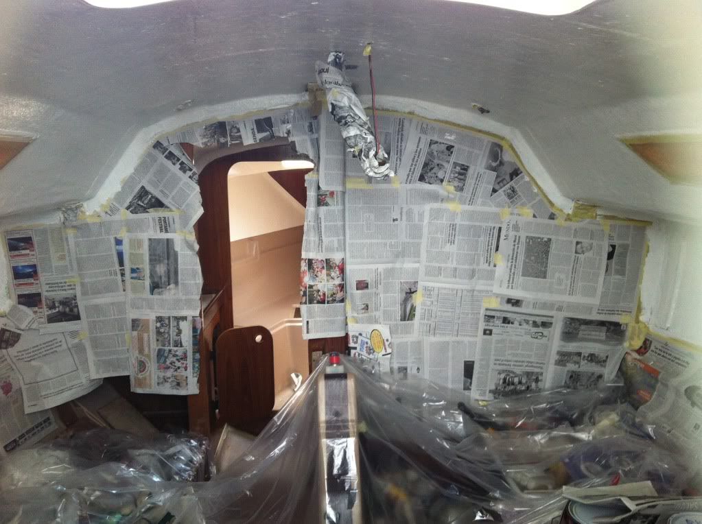 Pues esto. Se me está despegando el forro de la pared del camarote de proa de mi Oceanis 321.