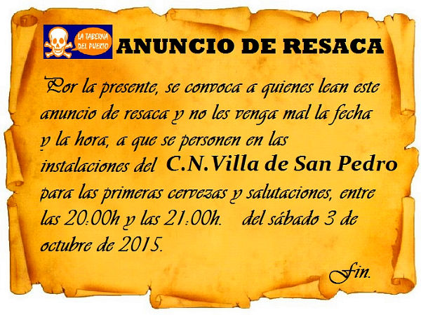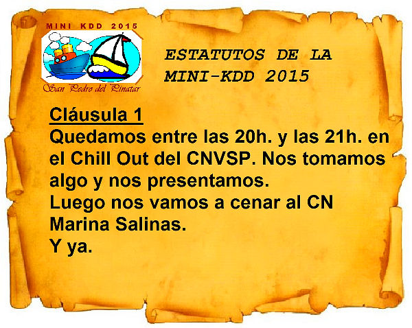 Siguiendo instrucciones del comité organizador, BARRA LIBRE DE CERVEZA ![]() para celebrar la convocatoria de ![]() que se celebrará D.M. el sábado 3 de octubre de 2015. Anuncio oficial: Como no queremos "mucho lío", se establecen estas normas: ¿Fácil, no? Edito desde "el futuro" para incluir el punto de encuentro: ![]() Y para que no se pierda nadie, de regalo ¡¡ UN MAPA !! ![]() ![]() ![]() ![]() HEMOS PENSADO QUE ES UNA FORMA "DESENFADADA Y POCO LABORIOSA" DE MANTENER EL CONTACTO ANUAL, SIN PEGARNOS EL PALIZÓN ORGANIZATIVO HABITUAL. LO IDEAL ES QUE OS APUNTÉIS TODOS LOS DE SIEMPRE, LOS DE LA ZONA, LOS DE CERCA.... PERO ¡¡¡ SOBRE TODO LOS NUEVOS !!! QUE HAY MUCHÍSIMA GENTE DE MURCIA, TOMAS MAESTRE, MAR MENOR.... NO ES UNA KDD CON BARCO NO SE PAGA NADA POR ADELANTADO SÓLO HAY QUE APUNTARSE, INDICANDO CUÁNTOS VIENEN. ![]() Soplo: El comité por orden alfabético ~ AMOSPALLÁ, BRUTUS, FRANYAGO, JUANITU, KIBO Y NONICK ~