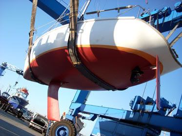 Bueno, sí es un First 25 pero no estoy tan seguro de que al final me quede ", niquelado", vamos a subir proximamente el barco y dejar abajo la orza, el de la grúa me dice que no me preocupe, que poniendo una marca en la orza y otra en el barco que no hay problema (parece muy seguro...asi que no me queda otra que fiarme).