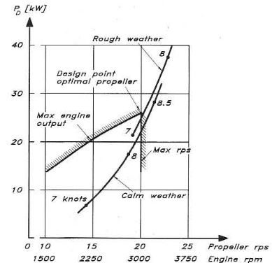 ![]() Este es un diagrama posible, también es posible que con mar fuerte lleguemos antes al tope de potencia que al de revoluciones.