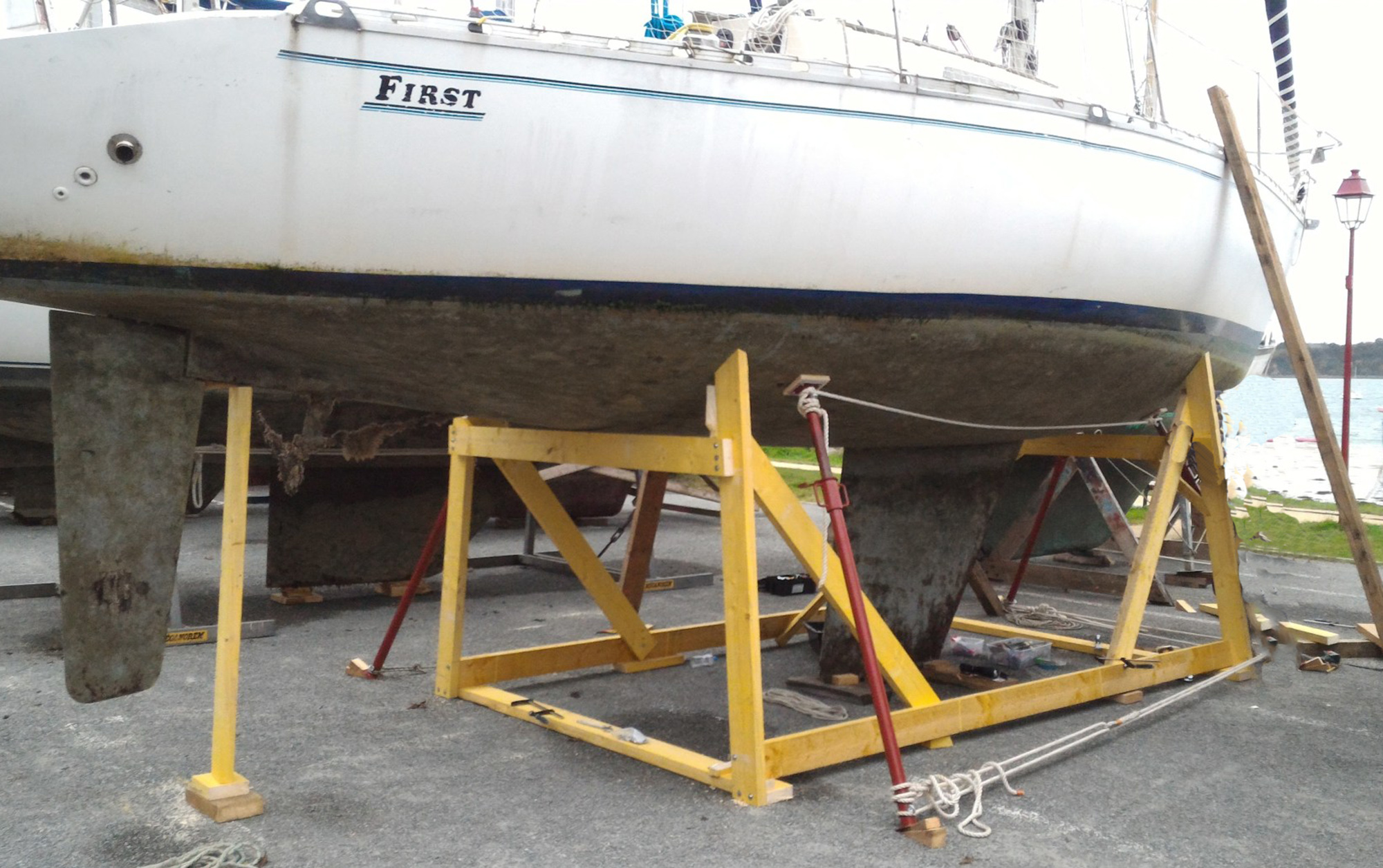 Para el caso de usar un remolque no náutico, lo mejor sería hacerlo con caballetes metálicos prestados o alquilados en un varadero.