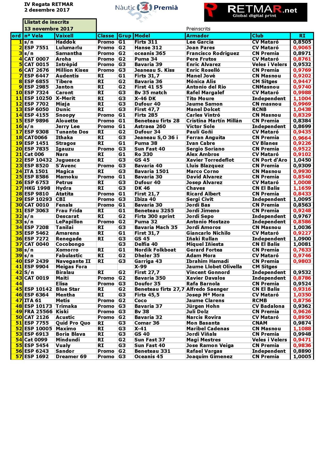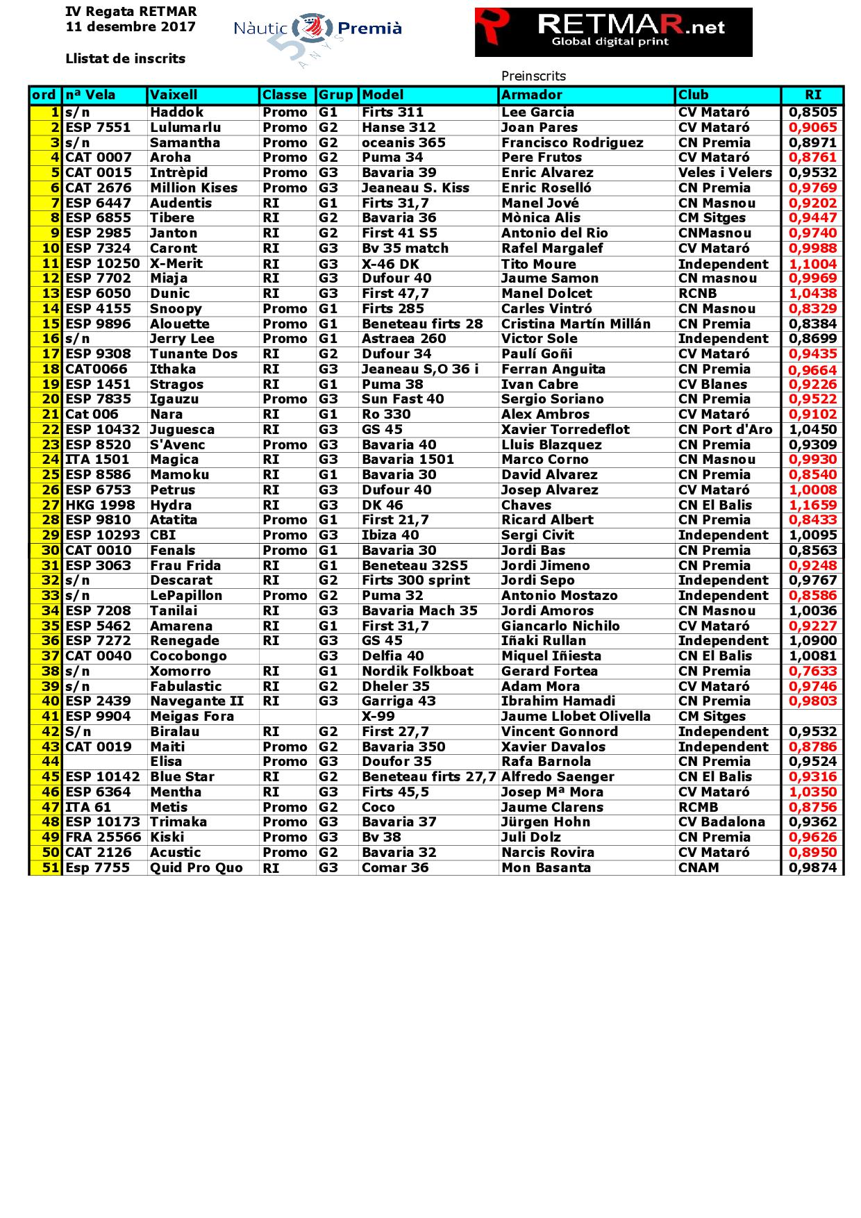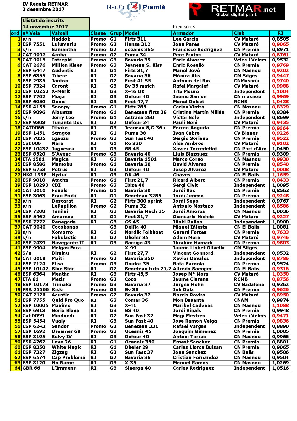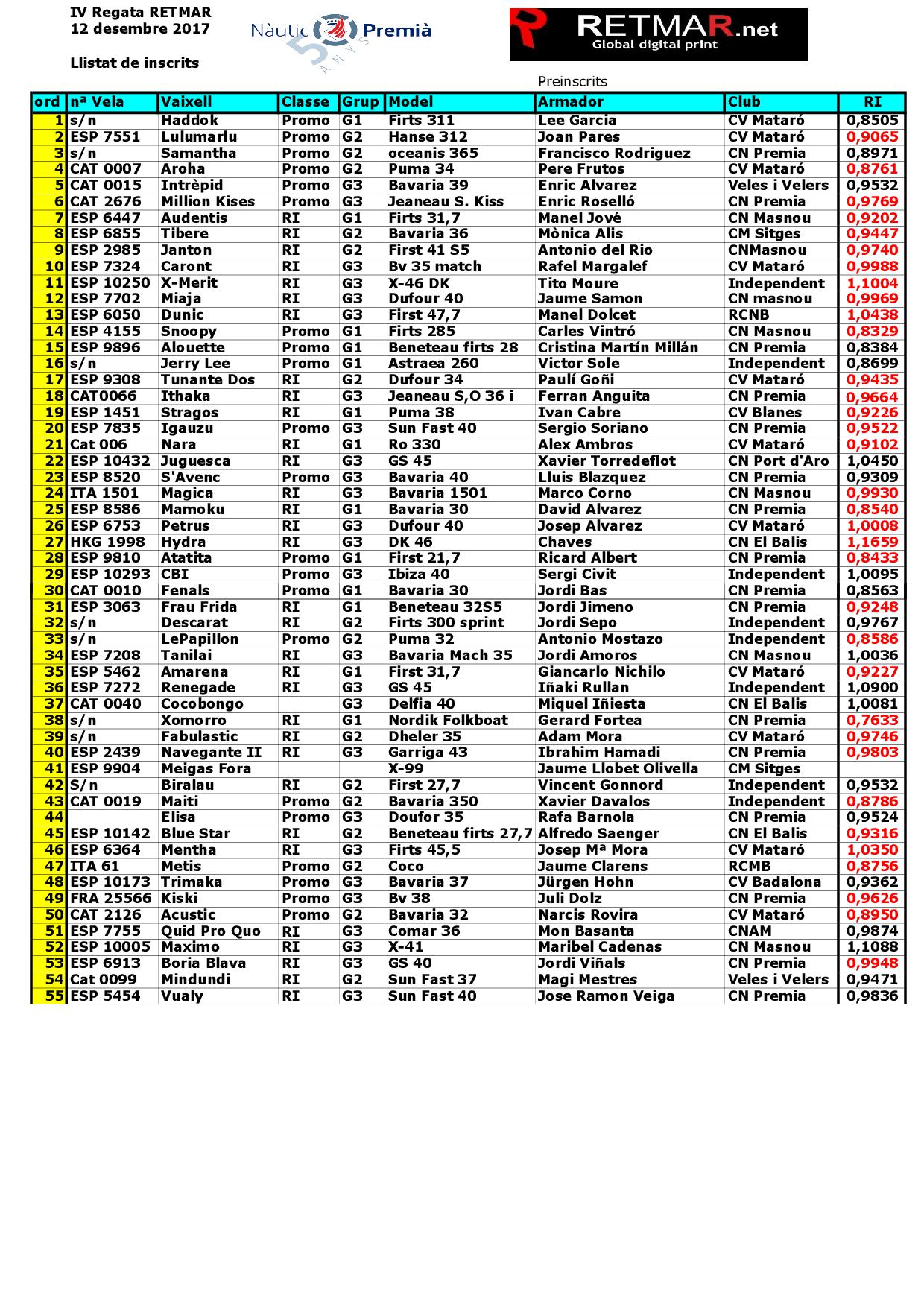 Predeterminado Re: IV Trofeo RETMAR Gran Premia 50 Aniversario Nàutic Premia