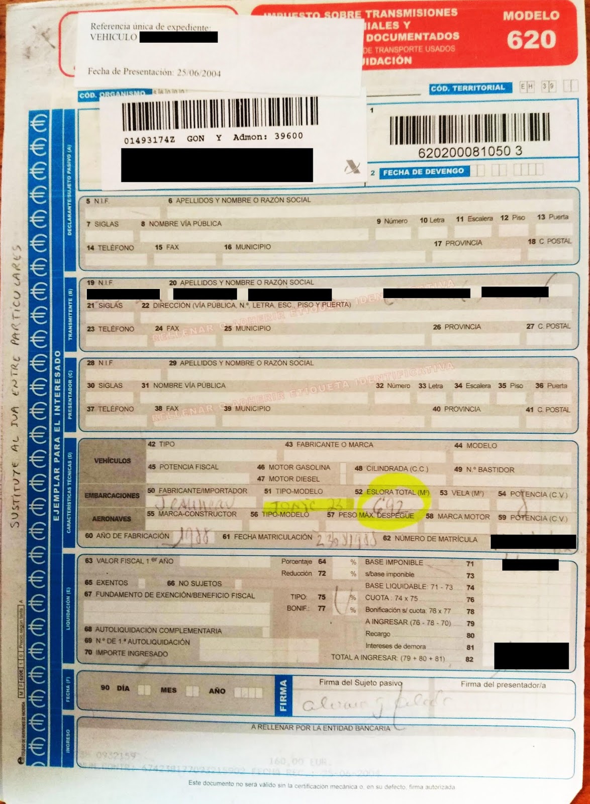 ![]() Tu responsabilidad con Hacienda es por la última transmisión, la que hizo que el barco pasara a tu propiedad, no la del primer comprador con el Astillero.