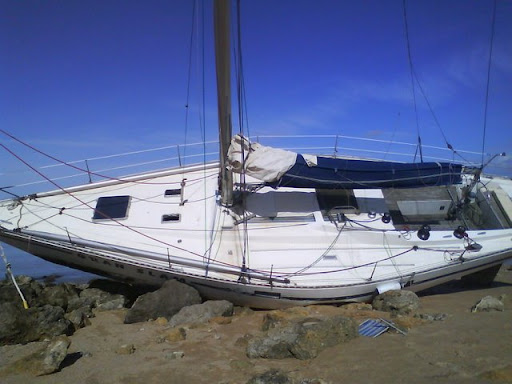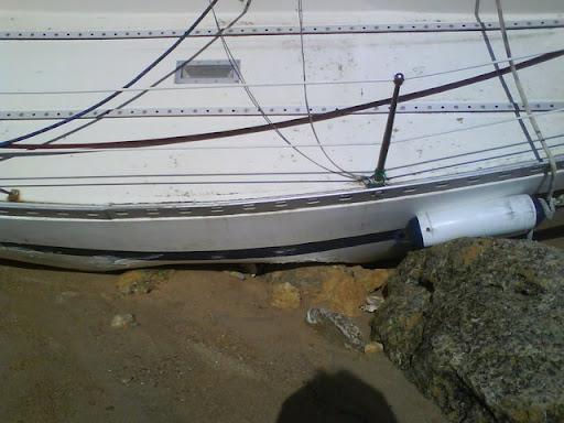No se porque me da la sensación de que el dueño no tendrá muchas ganas de reparar ese velero si miramos el estado de la helice. Si rascamos un poco podemos poner un puesto de crustaceos en el mercado.
