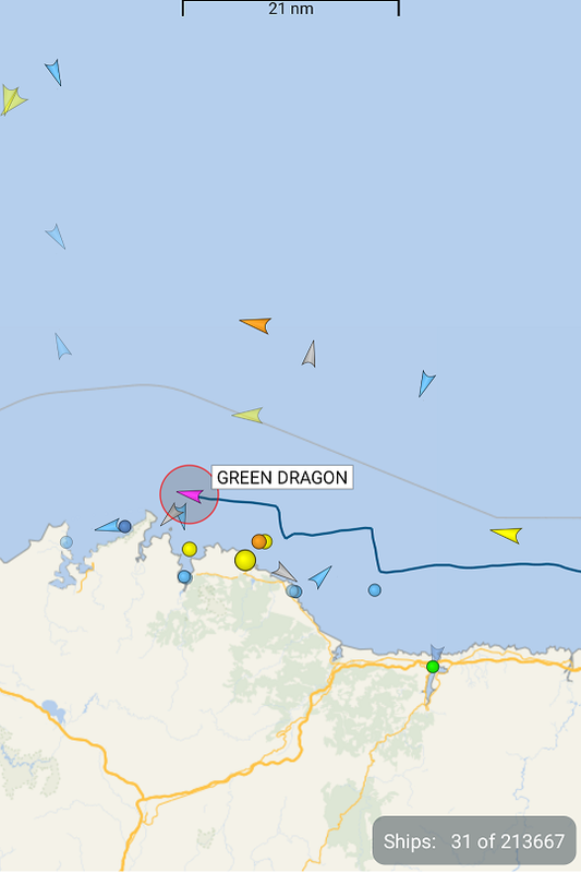En Marine Traffic se ha quedao pillao, pero en vesselfinder se ve.