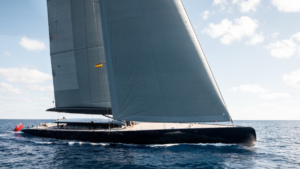 Con un aparejo avanzado de compuesto de carbono, el mástil de Ngoni alcanza una altura de 247 pies con una superficie de 9,182 pies cuadrados. ft. vela mayor.