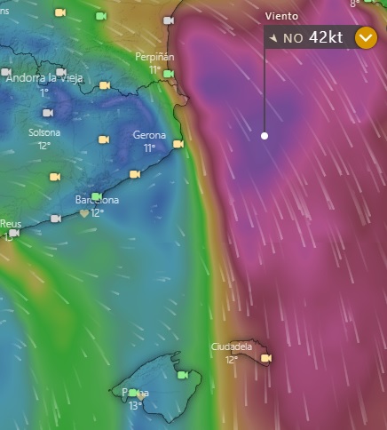 Las conexiones marítimas con Barcelona y Mallorca están canceladas desde el lunes por la noche y la isla está en alerta naranja por viento y fenómenos costeros adversos.