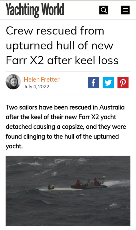 Probando la unidad, perdieron la orza, volcaron y fueron rescatadores helicóptero.