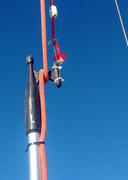 Dos veces por rotura del grillete de la vela al giratorio se me ha quedado arriba del todo. Con la driza del spi simplemente dandele unas vueltas alrededor del stay y tirando hacia abajo, y algo de paciencia, conseguí bajarlo. Me apunto lo de sujetar el bichero a la driza de spí, que me parece muy buena idea