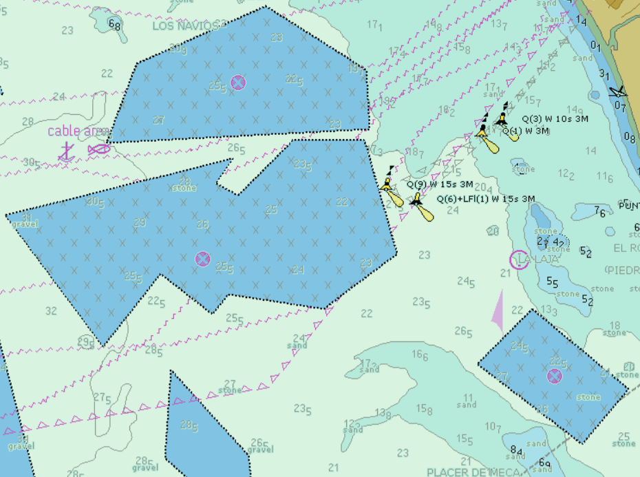 Tengo una duda sobre la carta electronica. Sabeis que significan estos poligonos con la X morada en el centro?