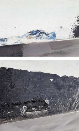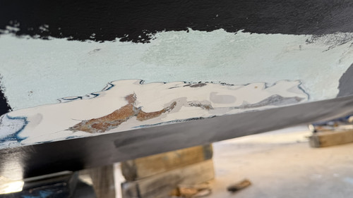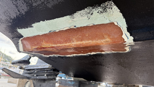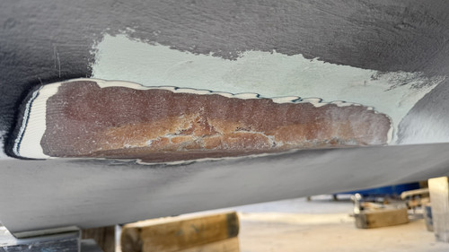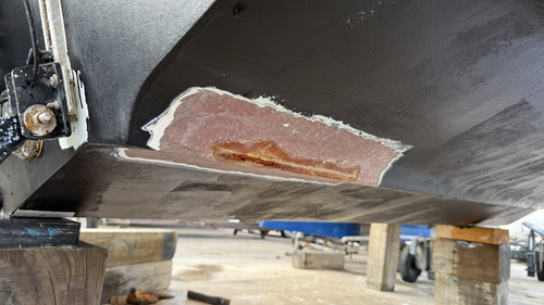 pintando el antifouling, he visto este daño en la parte baja del casco.
