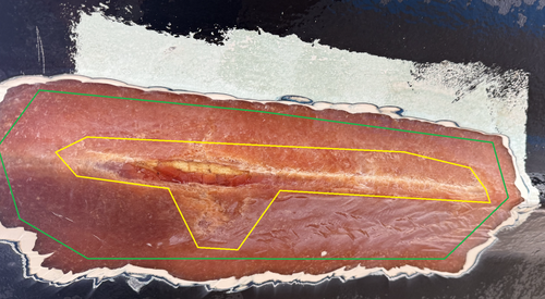 pues yo hubiese llegado al espejo de popa, y hacia proa habría buscado más. Un parche de esos no tiene fuerza ninguna, sino se trabaja por fuera y por dentro. Pero bueno cada uno tiene su forma de trabajar. Espero que te quede bien