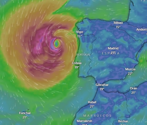 que se acerca a la costa portuguesa, sea especialmente violento. Clasificado como huracán de categoría 4, es uno de los más potentes del año.