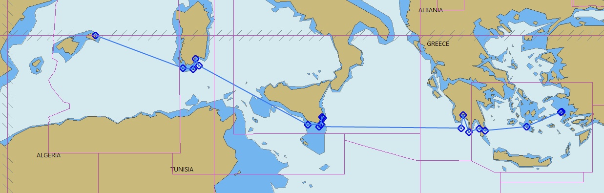 Es un transporte, con la idea de hacer solamente las escalas técnicamente necesarias, una en el sur de la Grecia continental, una en Sicilia y una en el sur de Cerdeña.
