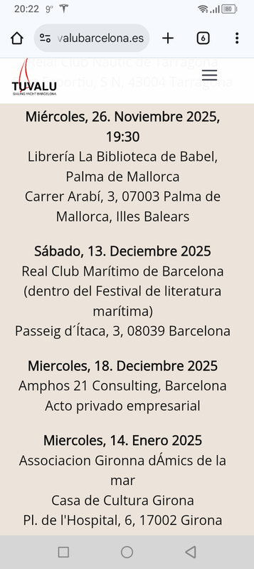 ![]() ![]() Hans e Imma, amarraban su dufour 40 en el espigón de levante en el puerto de Garraf en Barcelona una tarde hace ahora doce años los despedimos para una aventura que ha recorrido la vuelta a la tierra enhorabuena ![]() ![]() https://www.instagram.com/reel/DOLgpI1DE92/ https://www.diariodemallorca.es/depo...124162130.html ![]() .......................... presentaciones del libro ![]() |