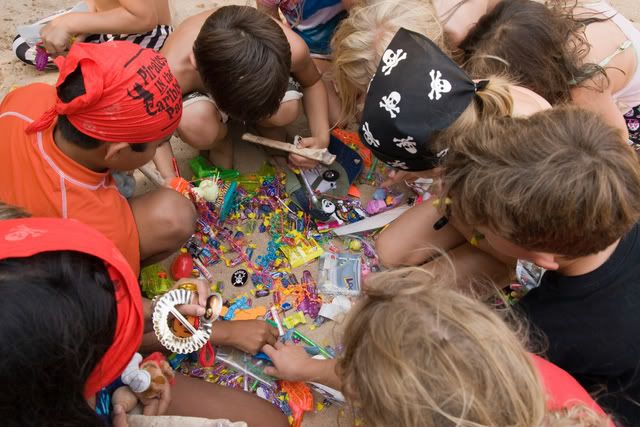 Al final se acaba con los crios desenterrando el tesoro y atiborrandose de caramelos y demas. Si la historia es convincente los enanos mas jovenes se lo tragan y se lo pasan pipa jugando a “buscar el tesoro”. En definitva un rato agradable para todos, facil y no muy caro y una escusa para una fiesta.