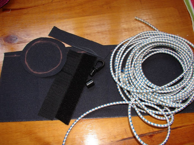 Masacril o cualquier lona o género: 1 trozo circular con el mismo díametro del winche , 1 trozo rectangular para la base y una tirilla para hacer la presilla