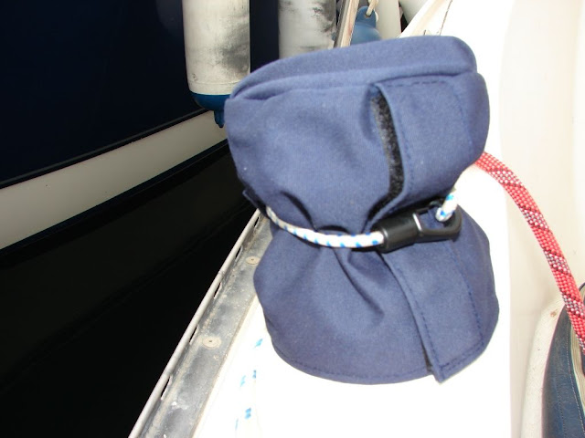 Una cosilla más.... esta funda ha quedao un poco guarra porque la cosí a mano a ratitos a bordo y ya se ve que las costuras están bastante torcidas.Lo que a pasa es que al caer la tarde con la fresquita, te pones un bambay shapire y te sientas en la bañera y estas labores se hacen muy gratas