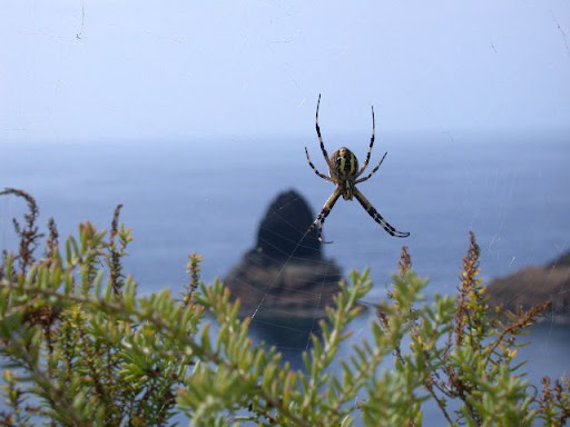 ¡Chula la araña tigre con el farallón al fondo!