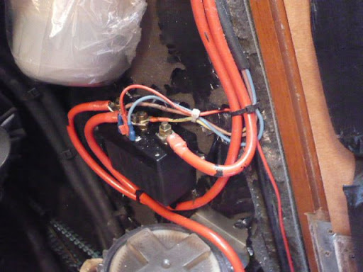 Una vez en Denia, desmonto las tapas para dejarlo a la vista y lo observo y no detecto nada, tambien una caja negra que esta en el compartimento del motor (que supongo que sera el Diodo) y tambien todos los cables conectados y todos correctos.