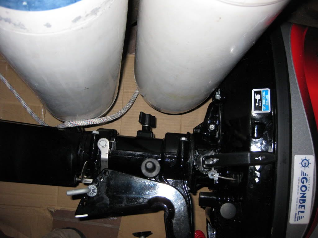 Buenas tardes, si el primer plan no da resultado pasemos al plan B. Anteriormente, teníamos el mismo motor, de 5 CV y de dos tiempos, con el mismo sistema del tornillo, con el tiempo, acabó cogiendo holgura y por mucha presión que ejercieras era imposible que el eje se estuviera quieto en el centro. Solución, dos cabitos, a ambos lados del pasamanos del motor, a estribor y a babor aferrados a alguna parte del barco. Ya sé que el sistema no es muy ortodoxo pero funciona y es sencillo.