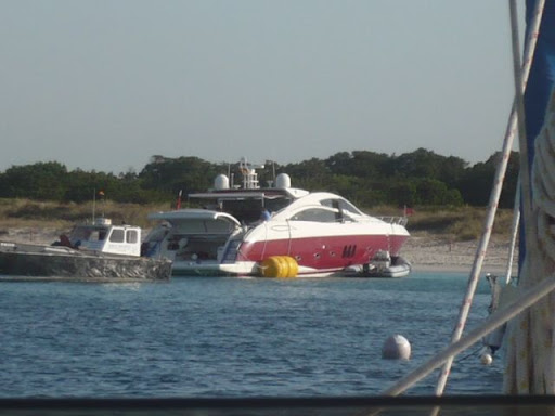 Este año estando en Espalmador contemplamos a un yate que se habia comido los bajos que alli hay, y aue al hilo del cofrade GOMONE, algunos habeis comentado, os dejo algunas fotos, saludosos.