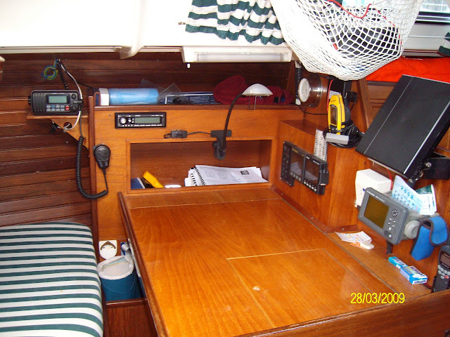 No tengo claro si el cambio de ubicación del carro de escota hasta la entrada de la cabina fué del astillero o si fué una modificación personal de algunos armadores. Mas bien me inclino por esto último.