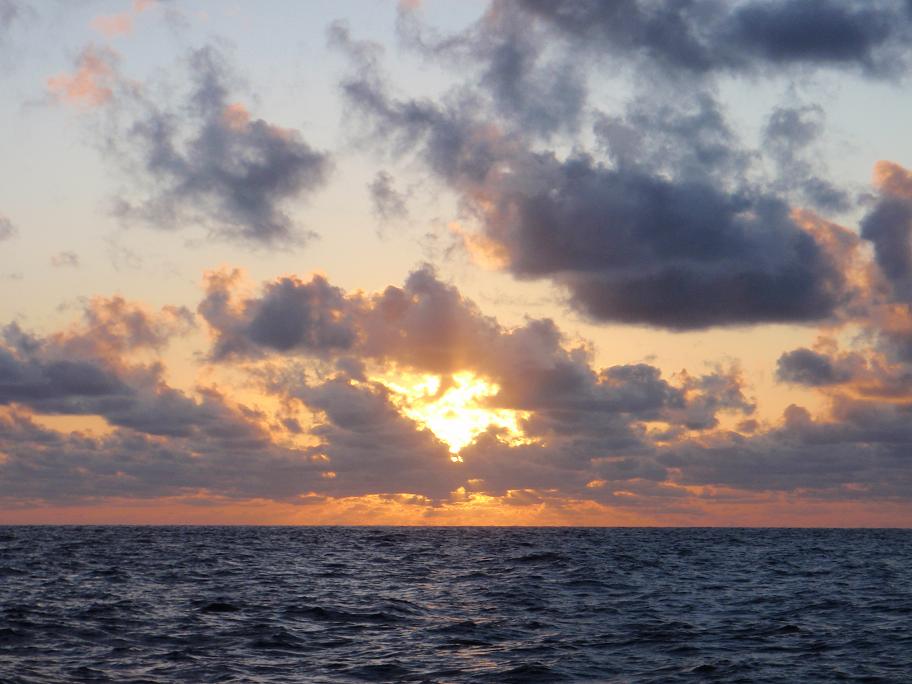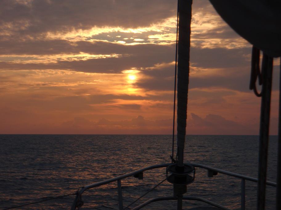 El cuarto día de ruta no tuvo demasiada novedad -sólo que no sacamos la caña de pescar para variar un poco la dieta-, con un viento bastante estable, ya a vela, íbamos adelantendo millas, no rumbo directo pero con un desvío aceptable que deberíamos recuperar haciendo un bordo en algún momento.