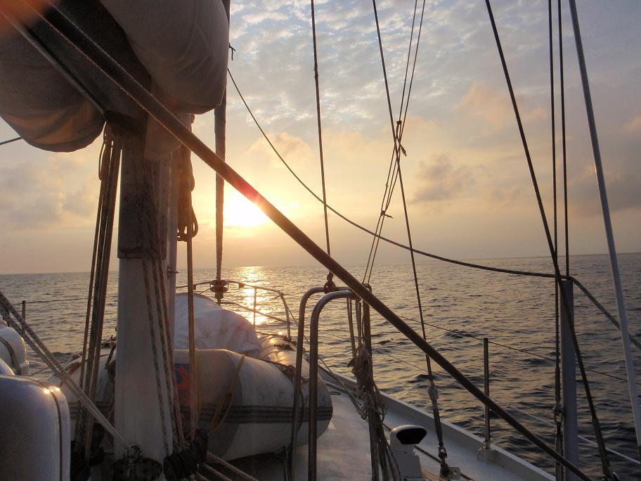 A las 6.45h del sexto día de navegación pusimos el motor para poder poner rumbo directo, ya veíamos la isla y estábamos deseosos de llegar