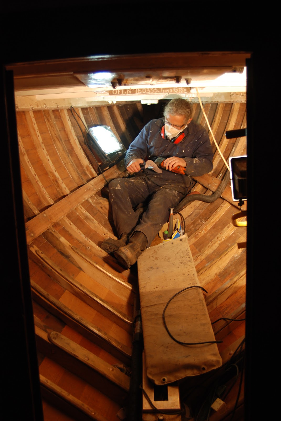 A pocos dias de volver al Sur de UK a navegar, unas fotos de como van los trabajos de restauracion en esta preciosidad de W. Fife.