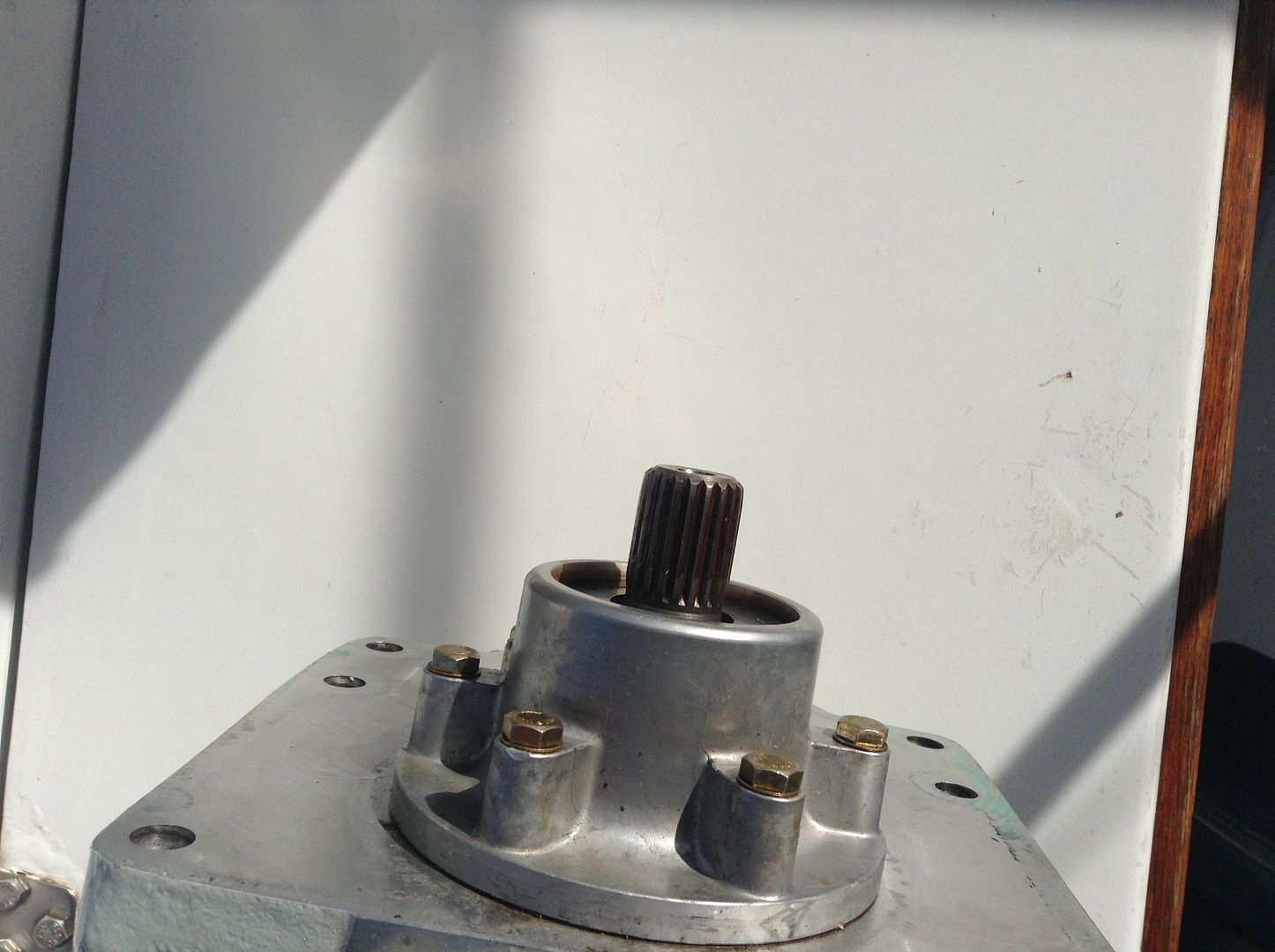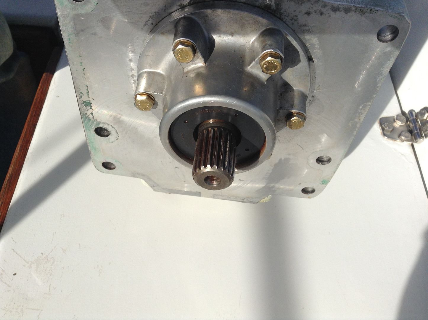 Mi motor tambien tenía el eje de salida gastado, con lo que la brida de conexión al eje de la hélice se movía y perdía aceite. Lo que hice fue mandar fabricar una brida con el estriado adaptado al del inversor, el desgastado, de manera que ha quedado muy ajustado y por un precio razonable (250 Eu) |