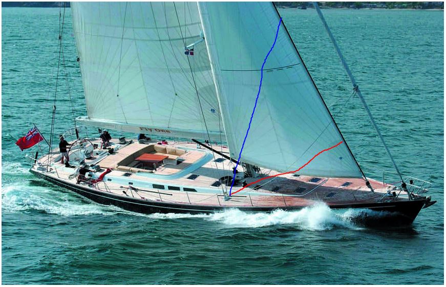 Pintas la línea que pasa por el puño de escota perpendicular al grátil y me rompe un poco los esquemas. Según lo que estado creyendo estos últimos 40 años la línea que tenía que caer en el escotero es la que une la mitad del grátil con el puño de escota.