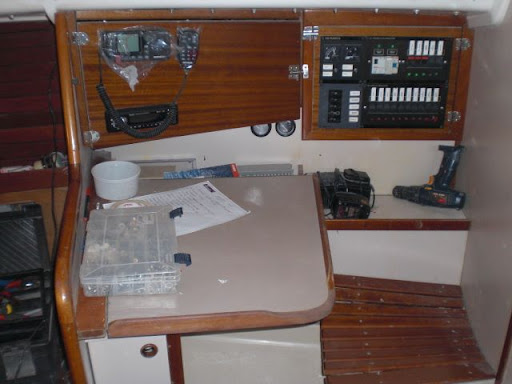 Hace tiempo que no escribo nada, y es que para mí, ha empezado la temporada alta de curro, coinciciendo con un cambio de trabajo. El barco va avante toda. La verdad, me queda muy poco. La botadura es inminente. Estoy esperando a ver los nuevos horarios del trabajo y sobre esto, decido. Le he puesto unas bandas de 10cm de ancho en el casco en plata "que lo flipas" Vaya tunning de F9 que me ha salido. A ver si tiro unas foticos y os lo enseño. También le he puesto la electrónica. Le he montado un Navstation de Simrad. No me gusta montado dentro, por lo que lo he montado en el sitio donde tenéis los tridatas. Por dentro, en el baño, le tuve que hacer un mueblecito de poliéster con una puerta de registro. Ya le monté tb un VHF con DSC y ya tengo el MMSI. Pues la verdad, me quedan un par de retoques y barnizar las molduras de madera del interior. El día que lo bote, no me lo creo, amigos... Salud a todos!!!