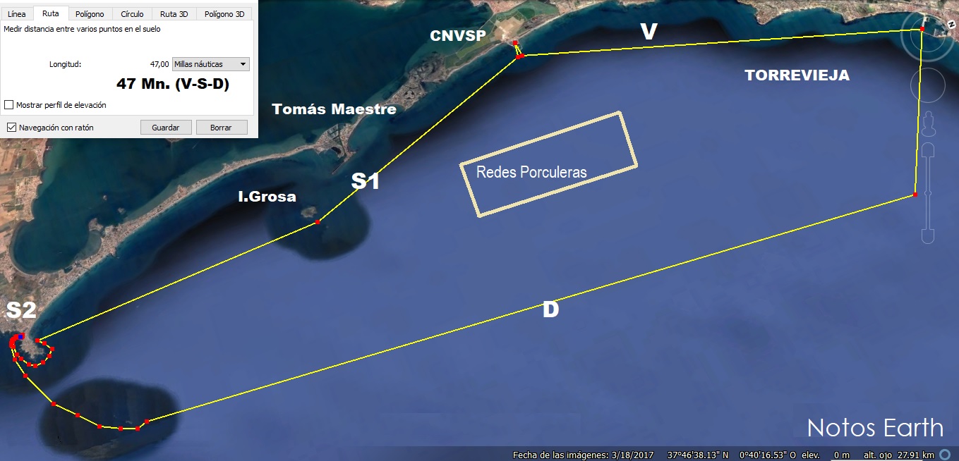 ![]() Otra cosa. Llevad bien actualizado el mapa de "Redes Porculeras" ![]() Al Norte de Cartagena, frente a Portman, aunque muy cerca de costa para las derrotas habituales. Frente a San Pedro y La Isla Grosa de La Manga, y frente a Guardamar y Santa Pola en la ruta a Tabarca.... Están bien señalidadas pero el cansancio y la mala mar a veces hace que se muevan y se ponen donde no estaban. ![]()
