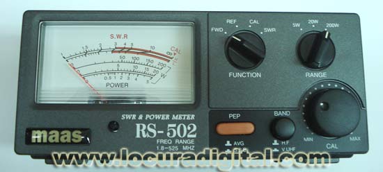 MAAS RS-502 MEDIDOR DE ROE / Watimetro 1,8 - 525 Mhz / 5 20 200 W. Incluye: - 1 Medidor - 1 Cable de alimentación - Instrucciones de uso en aleman CARACTERÍSTICAS - Rango de frecuencia: 1,8 - 525MHz - Rango de potencia: 1 - 200W - Escala de potencia: 5 / 20 / 200W - Potencia máxima: 200W - Rango de precisión 5W: (AVG) +/- 10% (PEP)+/-15% - Rango de precisión 20-3KW: (AVG) +/- 5% (PEP) +/-10% - Mínima potencia para ROE: 3W - Conector entrada/salida: Tipo M (SO-239) - Peso (neto): 950g - Pérdida de inserción: Menos de 0,1dB - Funcionamiento de prueba: FWD / REF POWER / PEP / ROE - Impedancia de entrada/salida: 50OHM ![]() Este es el que me compré hace poco, cubre todas las bandas . mira la web www.locuradigital.com el precio es bueno, y es una buena inversión. ![]()