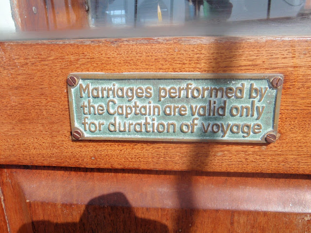 El Patrón los casa a bordo...... después de la boda, la pareja se pasa por el juzgado con el papel en el que se refleja el acto. El oficial de turno le dará día y hora..... y entonces el juez estudiará el papel, y preguntara a los contrayentes si se ratifican en el contenido...... si desean casarse, si lo hacen por propia voluntad, les leera unos cuantos articulos del código civil referentes a obligaciones y derechos de los contrayentes...... se firmará en el libro correspondiente ... delante de los testigos.... que asi mismo firmarán...... y ..... ya esta.......pueden pasar a recojer el libro de familia en un mes....... Y entonces el matrimonio celebrado por el patrón, desde el día que el juez lo inscribe (no hay retroactividad), es valido. ![]() ![]() ![]()