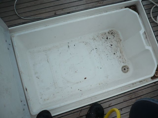Hola cofrade Panxut, he visto tus comentarios pero no las fotos, que lastima pues me hubieran orientado mucho. Te pongo unas fotos de mi tambucho, que quiero dejarlo como esta por dentro (donde pondria la bebida y el hielo) y revestirlo por fuera (que esta bajo la cubierta de la bañera y dentro de la embarcacion.