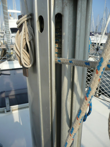 Lo cierto es que los enrolladores de mayor son un poco "delicados" por llamarlos de alguna forma.Debes de tener mucho cuidado al desliar-liar y el truco está en hacerlo a la vez para que no coja vueltas el cabo.Tampoco debe de tener excesiva tensión la driza, de lo contrario se pone bastante duro.Por lo que distingo en la foto parece que lo llevas en el interior del palo(pensaba que al decir adosado estaba por fuera).El tambor donde lia el cabo cuando recoges si es liso y no tiene guia lo normal es que coja vueltas, el que yo llevo es un tambor alargado que lleva unas muescas donde se va liando el cabo de forma ordenada. De cualquier forma si vas a quitar la vela con que le tires al cabo desde la botavara es suficiente,siempre que no este pillado el que recoje(debes de hacerlo con cuidado. ![]()