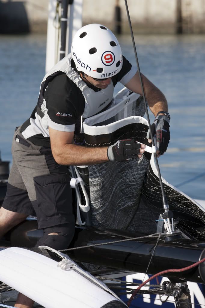 "El verdadero problema es el peso. Porque el barco no es ancho, y el ala tiene bastante potencia. Hace falta el máximo de peso, y no lo tendremos... De hecho, hay que ser superpesado, lo que no es nuestro caso. Así pues, hay que encontrar soluciones"