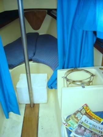 Al final, ya sabes que a todo barco le va a entrar agua y te va a ir despegando la moqueta poco a poco y creandote malos olores por la humedad. Yo cuando pillé el barco tenía todo el interior enmoquetado y ademas de estar empezando a despegarse, la moqueta no me dejaba ver exactamente por donde entraba el agua, así que tirando de disolvente, y muchas horas, conseguí dejar la fibra al aire y a pintar.
