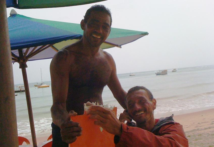 Sin ir más lejos, en la última Transat 650, Ricardo Apolloni, yendo 2º en la etapa y, a 35 millas de Salvador de Bahía, embarrancó cerca de una playa..... Al fondo aparece el barco de Apolloni y él en primer término mostrando la avería....
