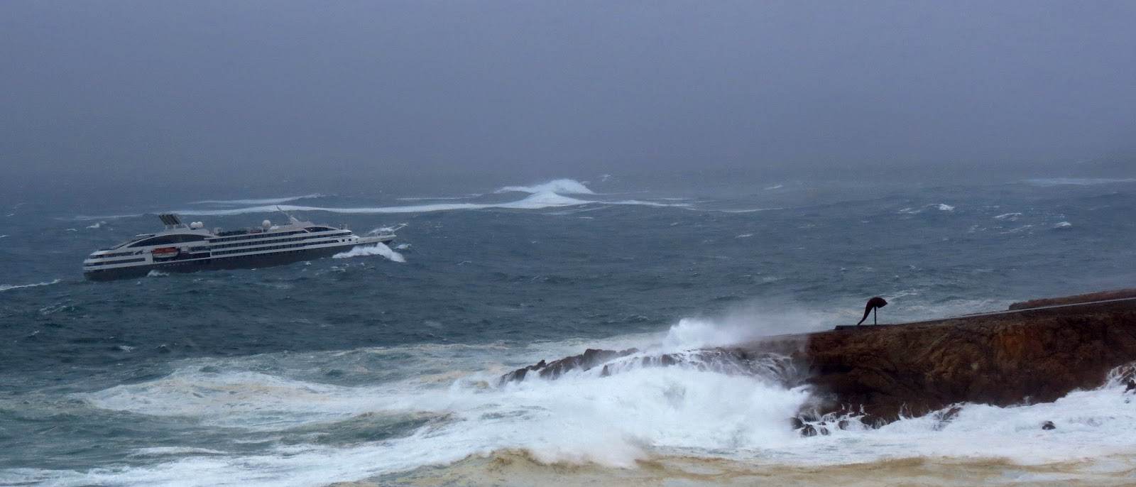 Un barco en plena tormenta sin propulsión ....., en este caso tuvieron suerte y a las 6 horas pudieron volver a arrancar motores, pero creo que esas 6 horas le valieron a muchos para no volver a pisar un barco.