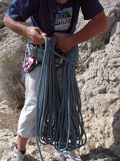 Yo los recojo con brazas, tipo escalada, que es lo mas comun y comodo