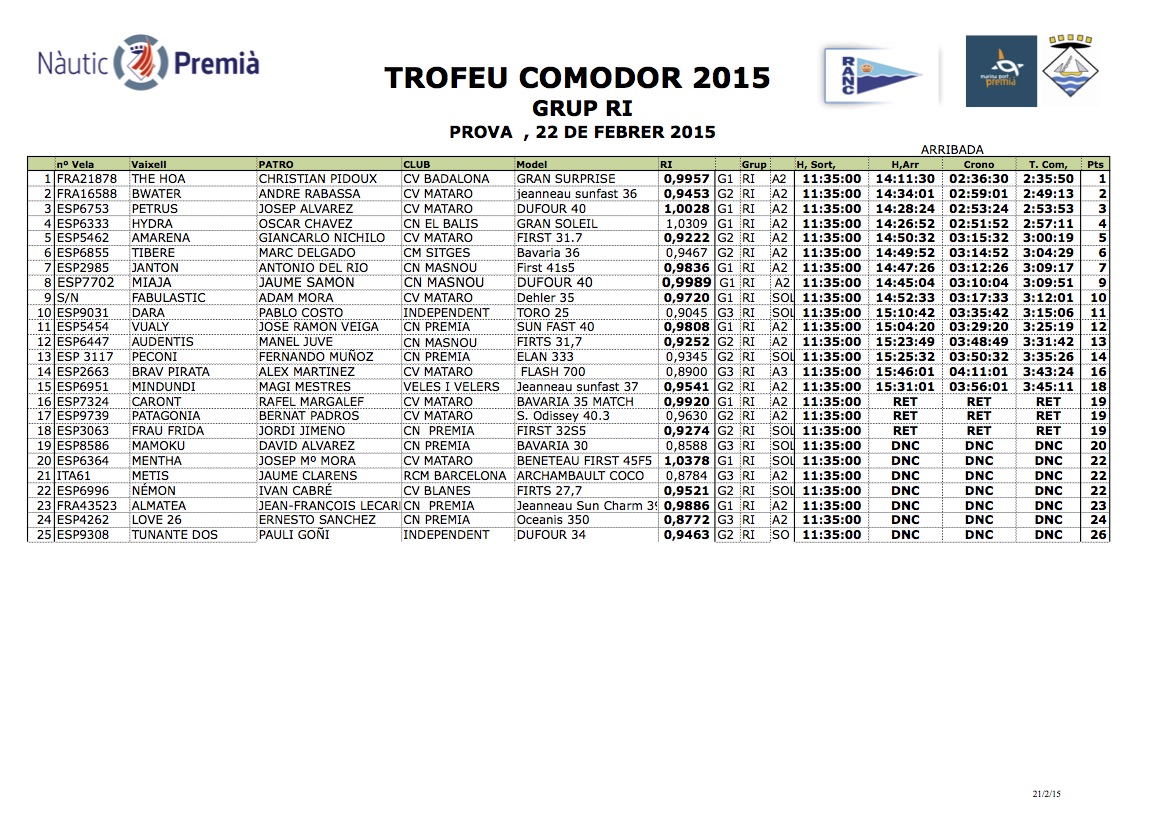 18 embarcaciones grupo RI, 23 grupo PROMOCION.